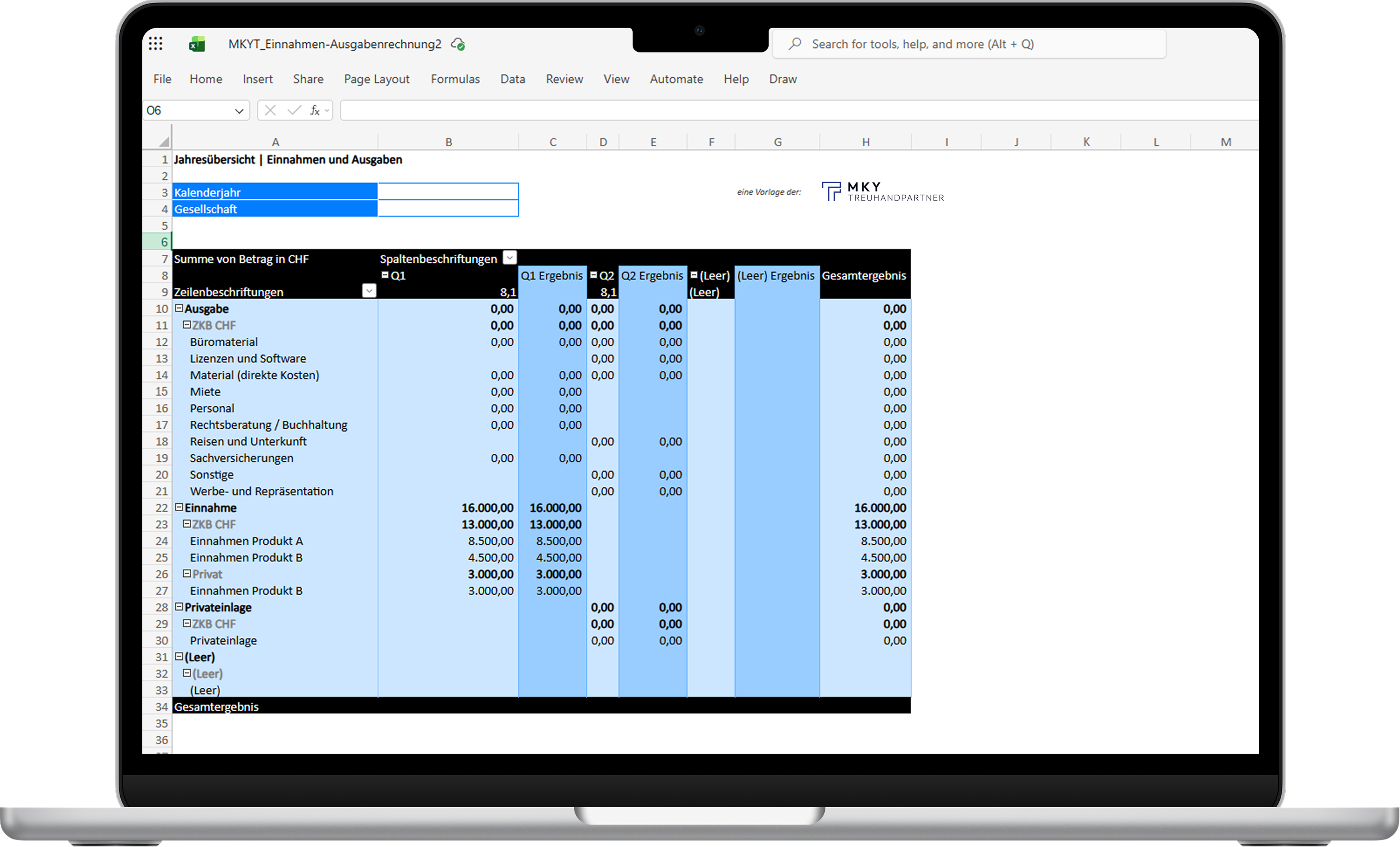 Record income, expenditure and quarterly results in a clear and structured format. This template gives business owners a quick overview of their company’s finances and helps them make more informed financial decisions throughout the year.